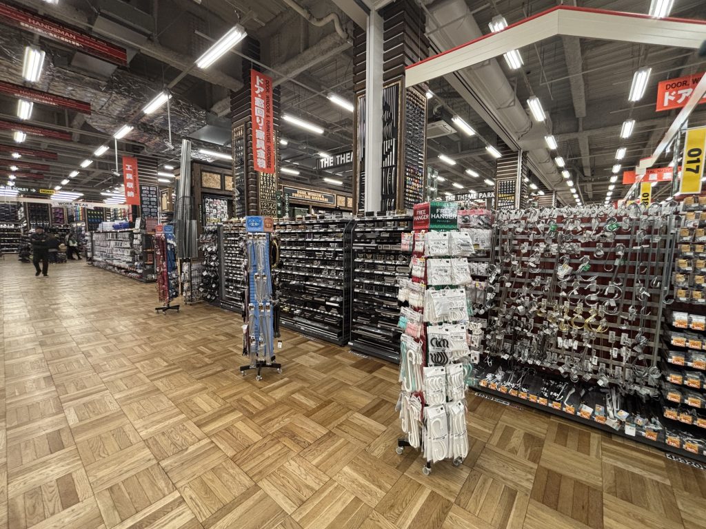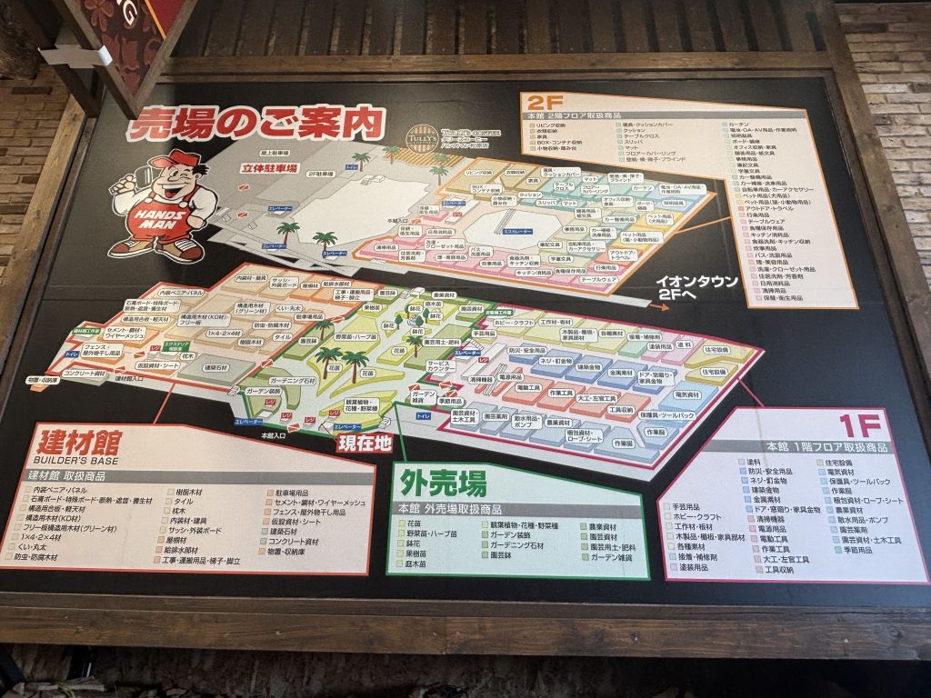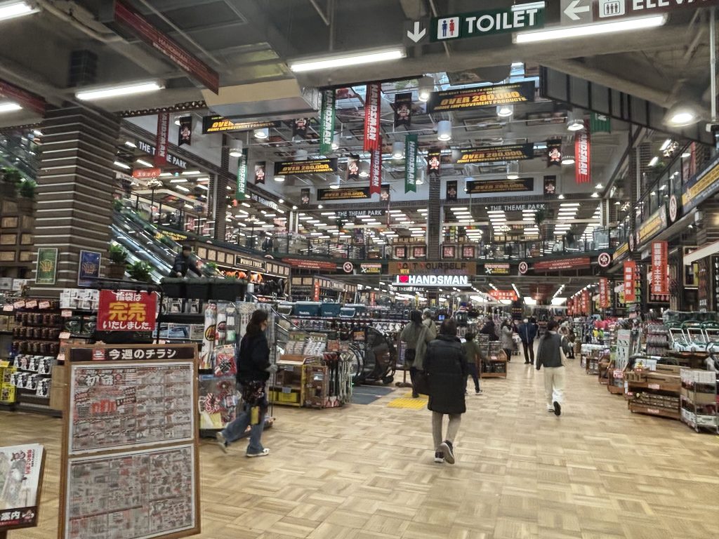 28万品目の品ぞろえ、敷地面積19,000坪、売場面積6,000坪、駐車台数1,400台はホームセンターでは西日本最大級とのこと。
